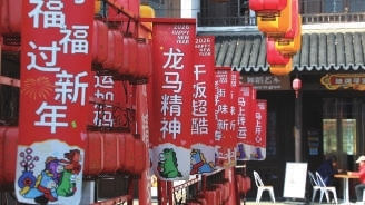 老街入口的大草坪上,一抹亮眼的中国红格外吸睛。集装箱式的年味装置映入记者眼帘,一只憨态可掬的“小马”悠闲地侧卧其上,内部点缀着鲜花,成为老街新晋打卡点,不少游人驻足留影,定格这份专属新春的灵动和喜气。草坪上,市民们或铺起野餐垫,或撑开露营椅,伴着阳光闲谈小憩,满是团圆惬意的年味。“这里装饰得喜气洋洋的,特别有春节氛围感,我们几乎每周都会来玩一次,晒晒太阳特别舒服。”市民张玲说。