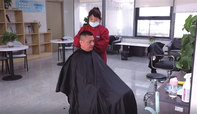 司机之家不仅是“能量补给站”,更是接单之余放松身心的“加油站”。记者沿着楼梯来到二楼,理发区、阅读区、展陈区划分清晰,可一站式满足司机的多元需求。